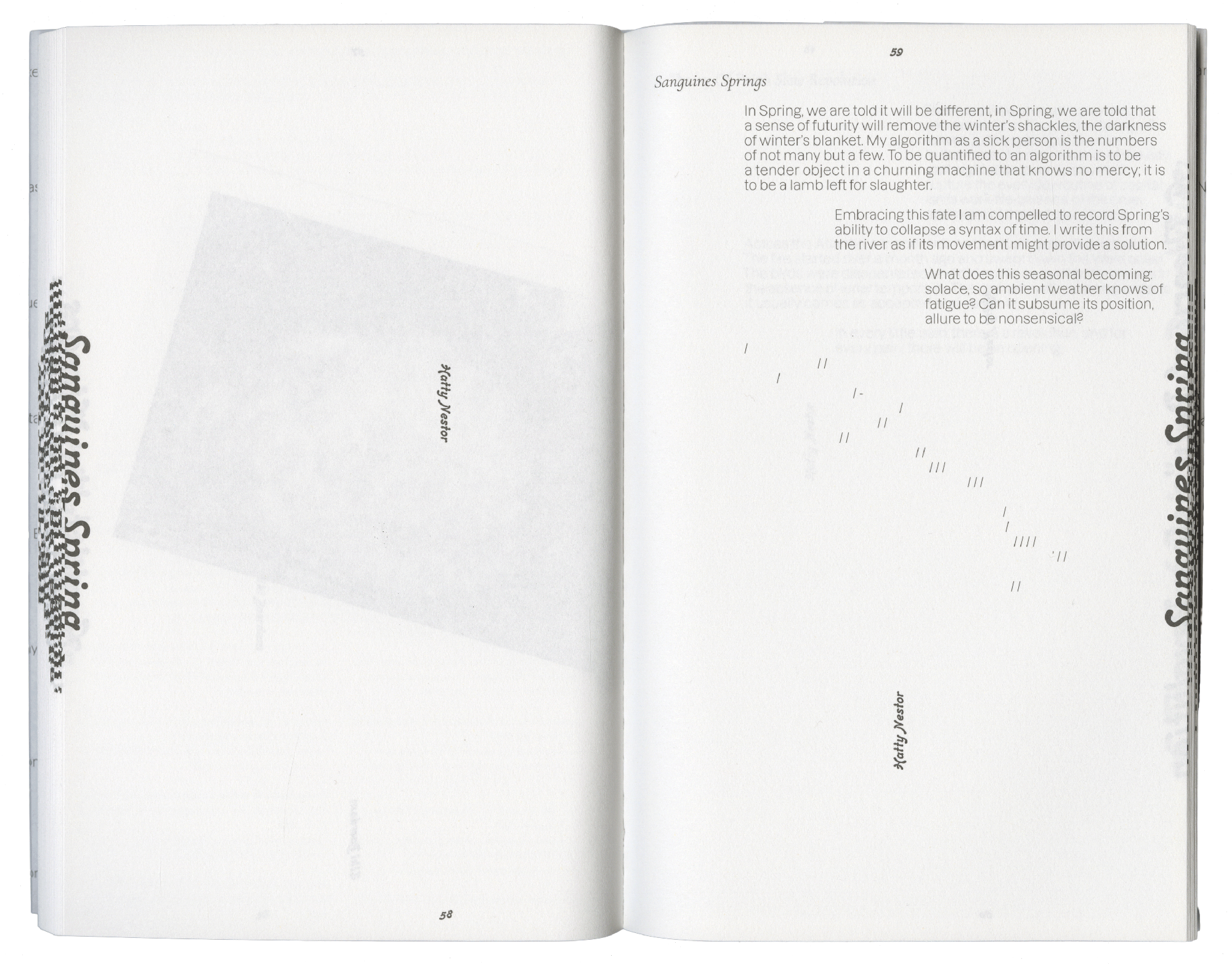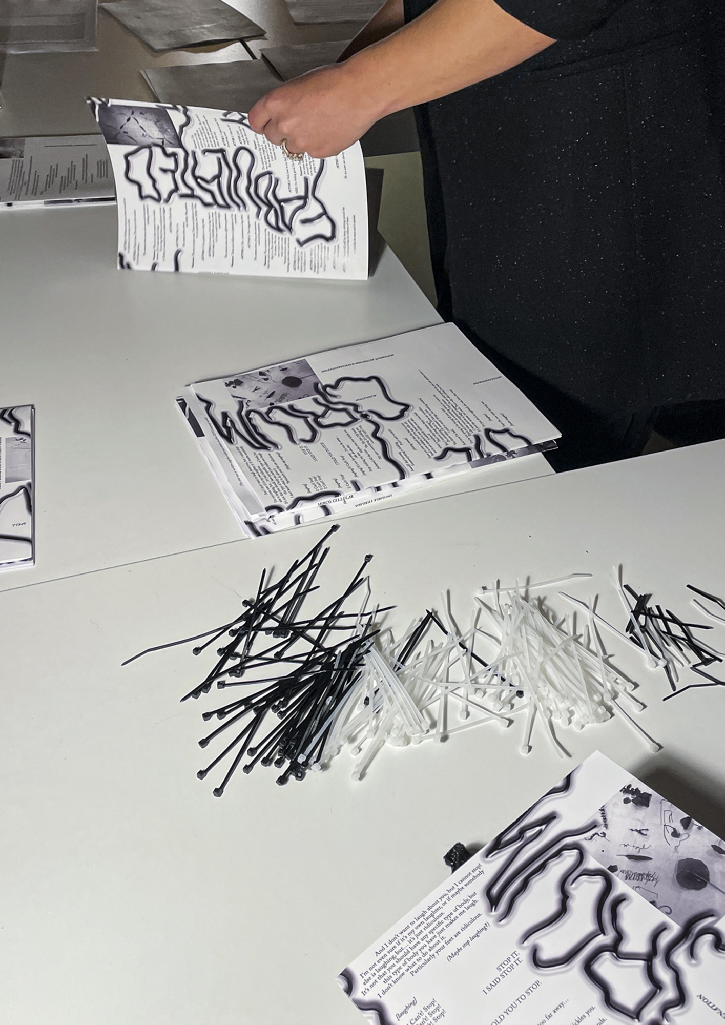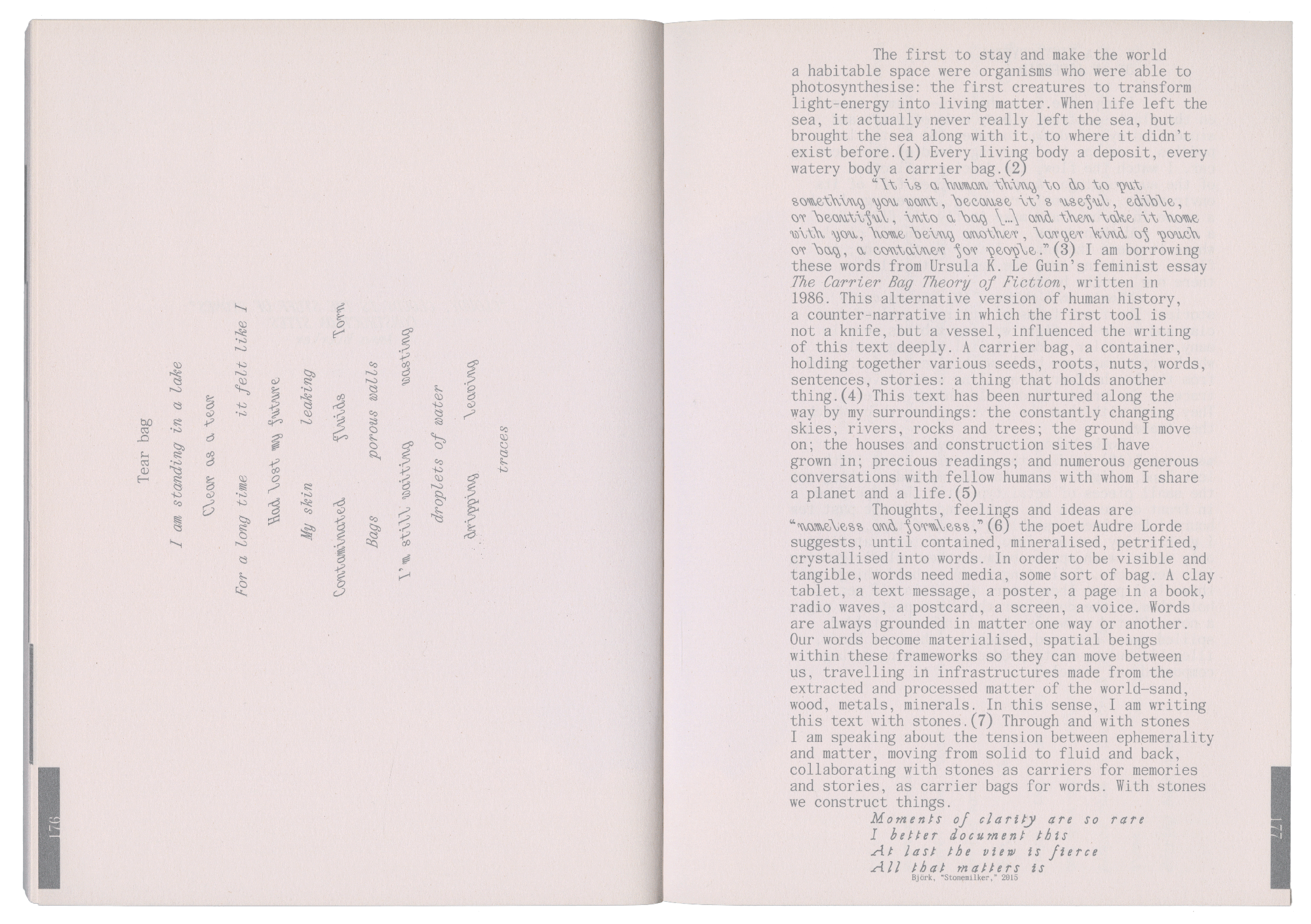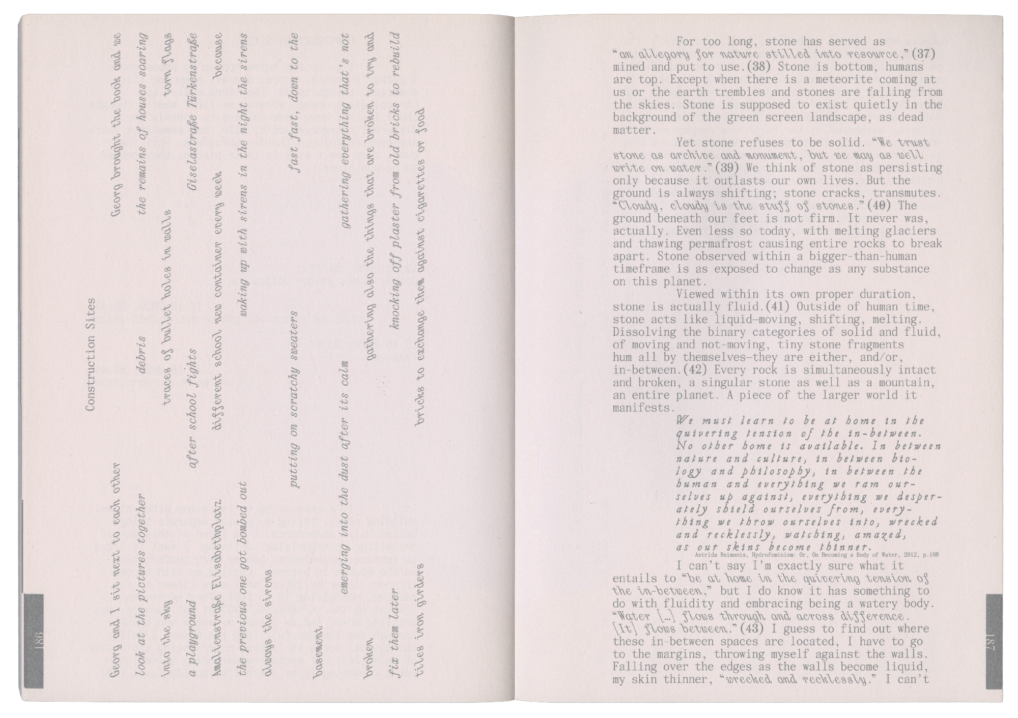 A book, among other things. They are results, or maybe stepping stones, of an experimental writing practice that revolves around the intuitive, the unknown and the non-permanent. Blurring the lines between writing and reading, thought and material, body and identity, they attempt to expand the meaning of text. Maybe, in this sense, writing can become a tender tool for knowledge production and internal reflection rather than a means for documentation.