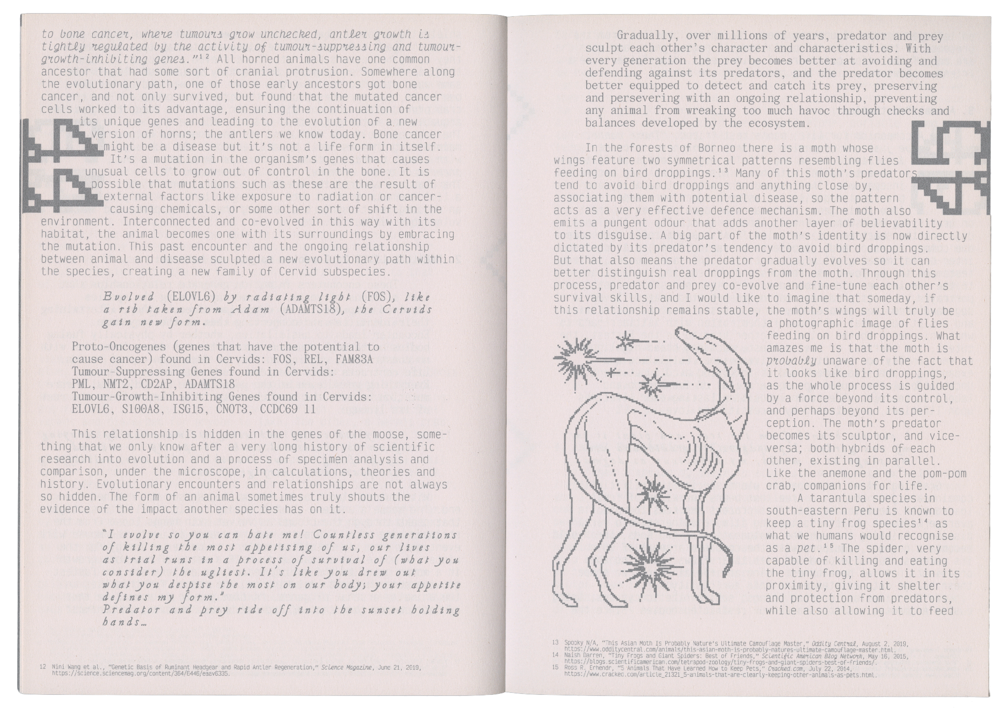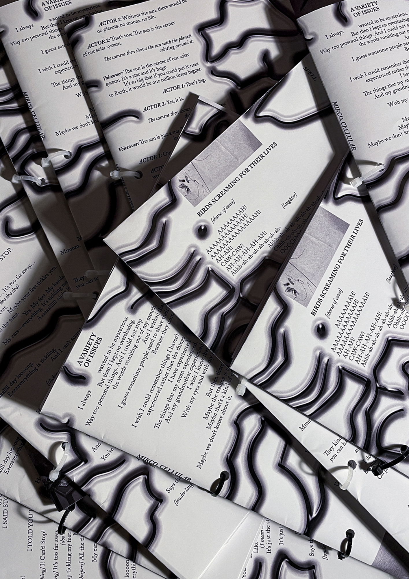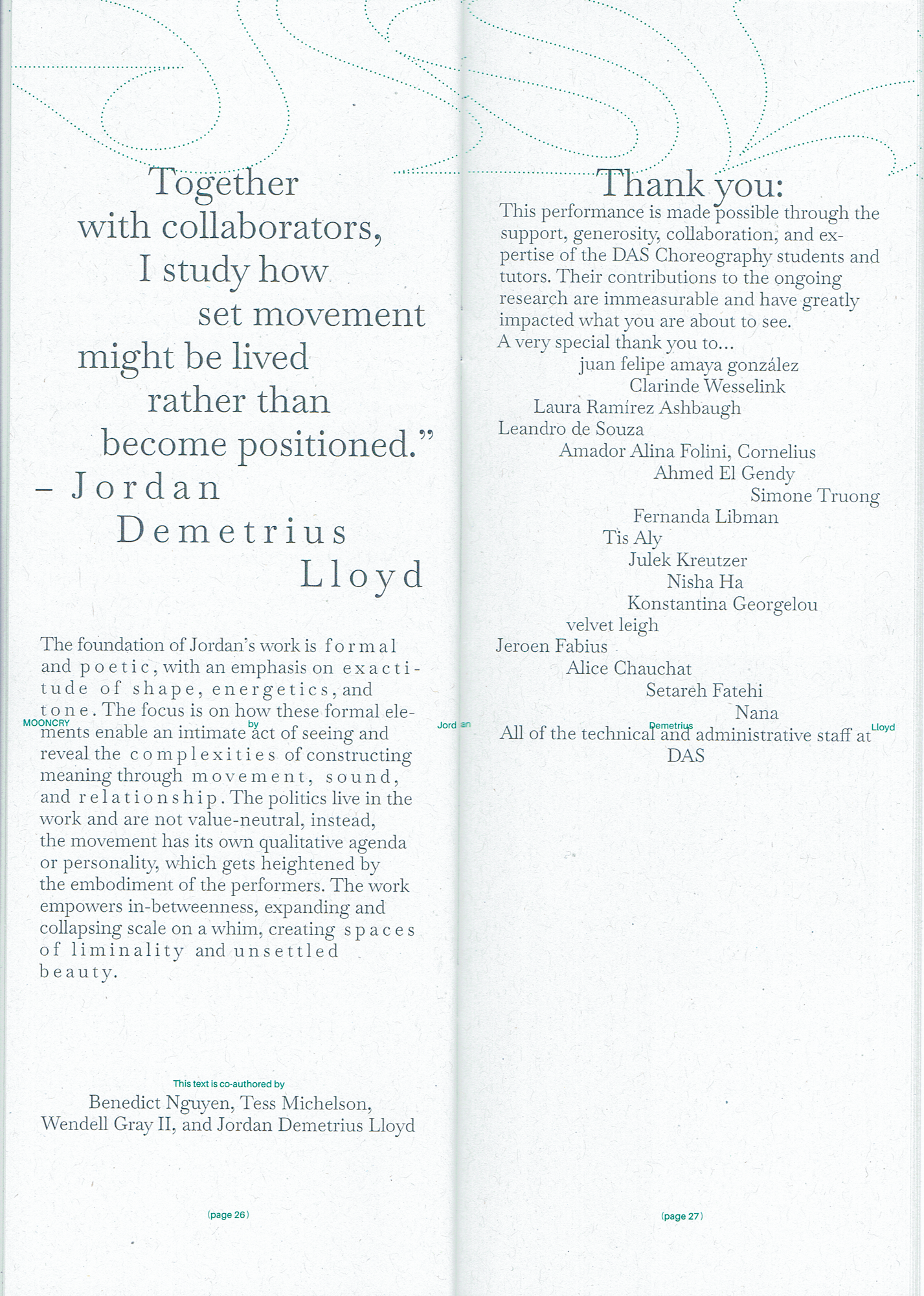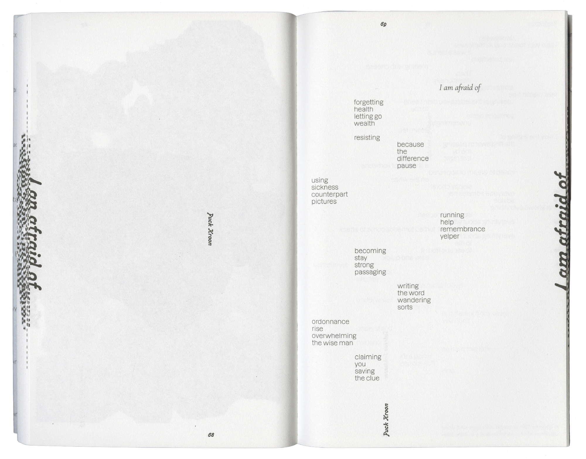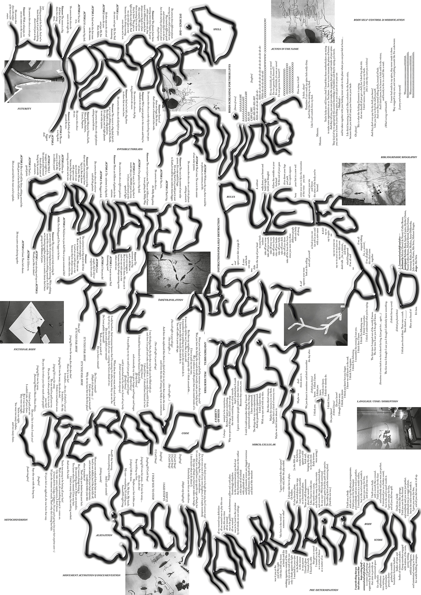 A poster, cut and folded into a publication, holding various writings that were born by the writing group I want the thing that you had when you wrote that keeps writing itself — unmoored and adrift and alive. In a series of gatherings, supported by If I Can’t Dance, the group aims to provide an experimental space for collective explorations into writing as a performative practice distinguished by unstable boundaries between bodies: bodies of texts and bodies of writers and readers. Group members engaged with notions of the score, asemic writing, artificial intelligence, and intertextual weaving as lenses for world-building strategies.