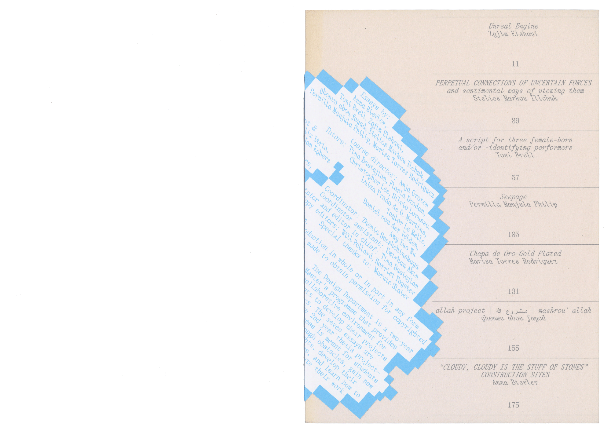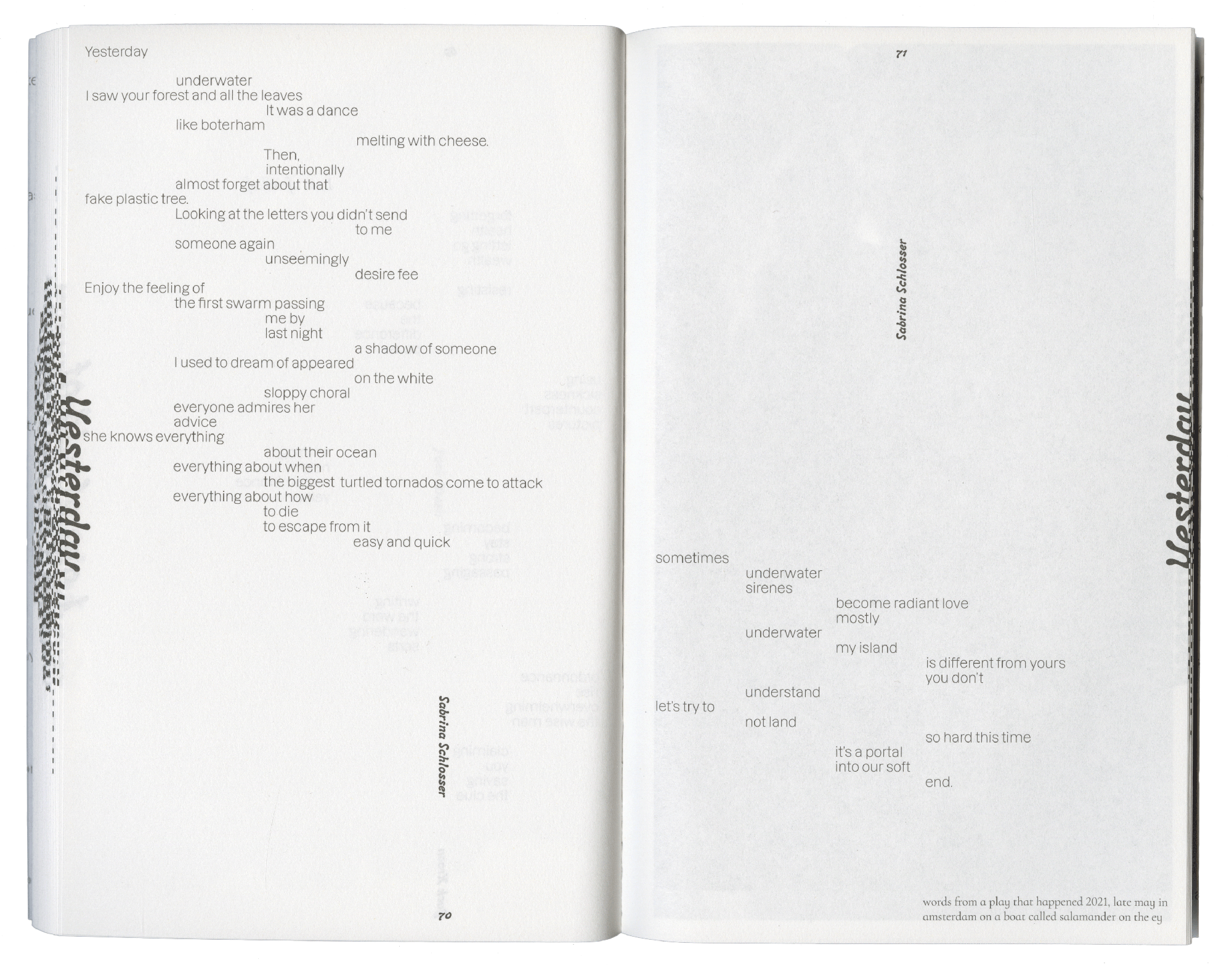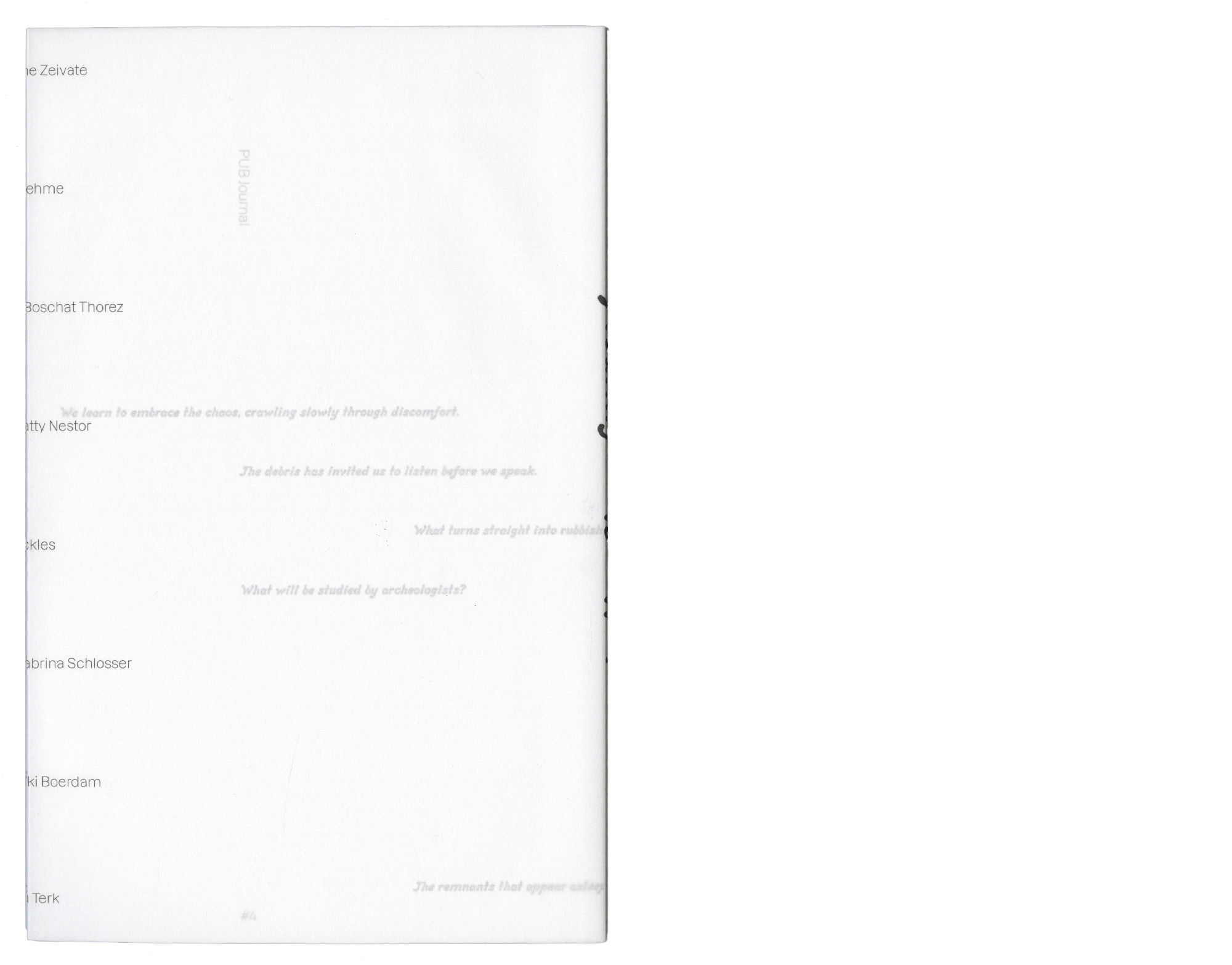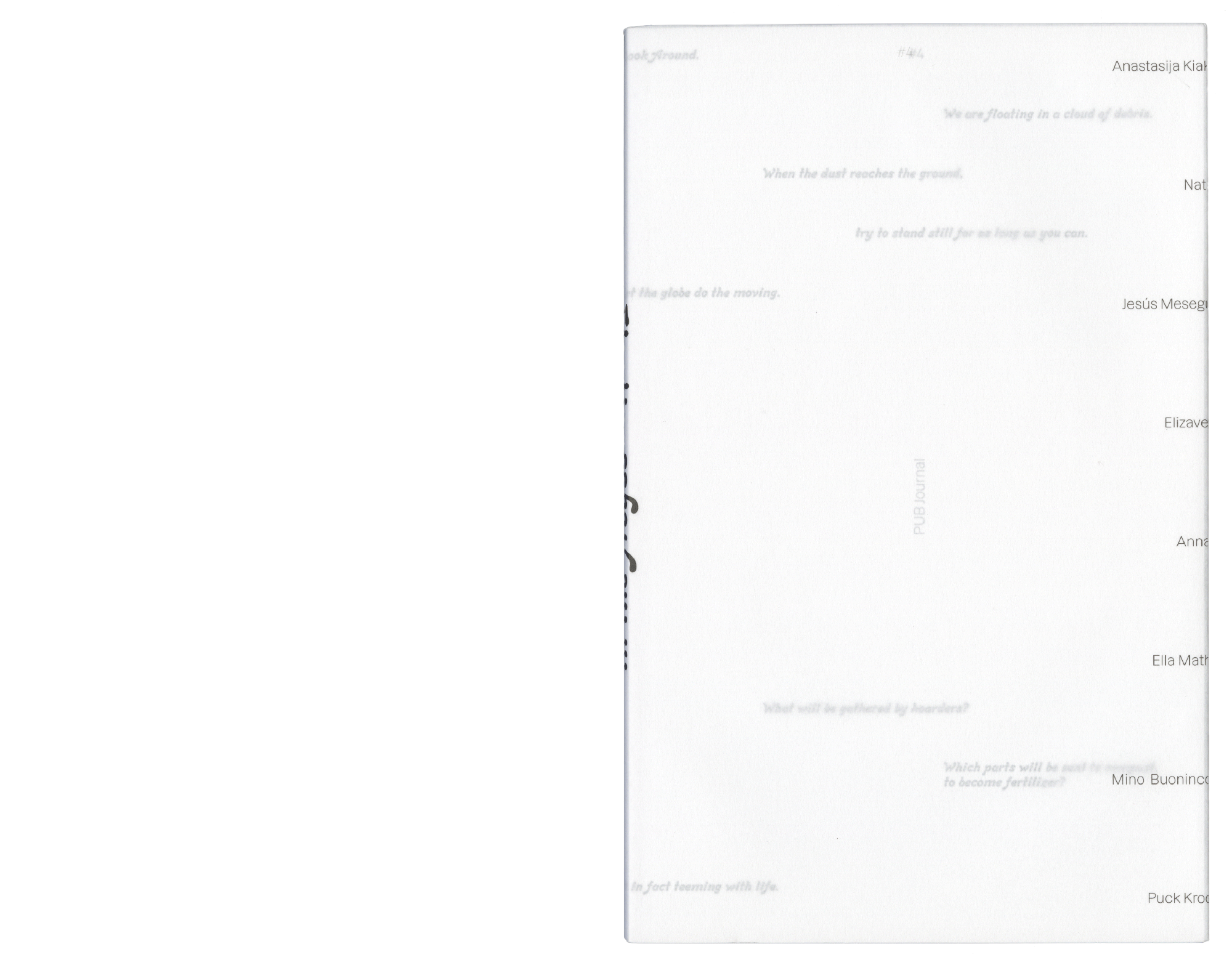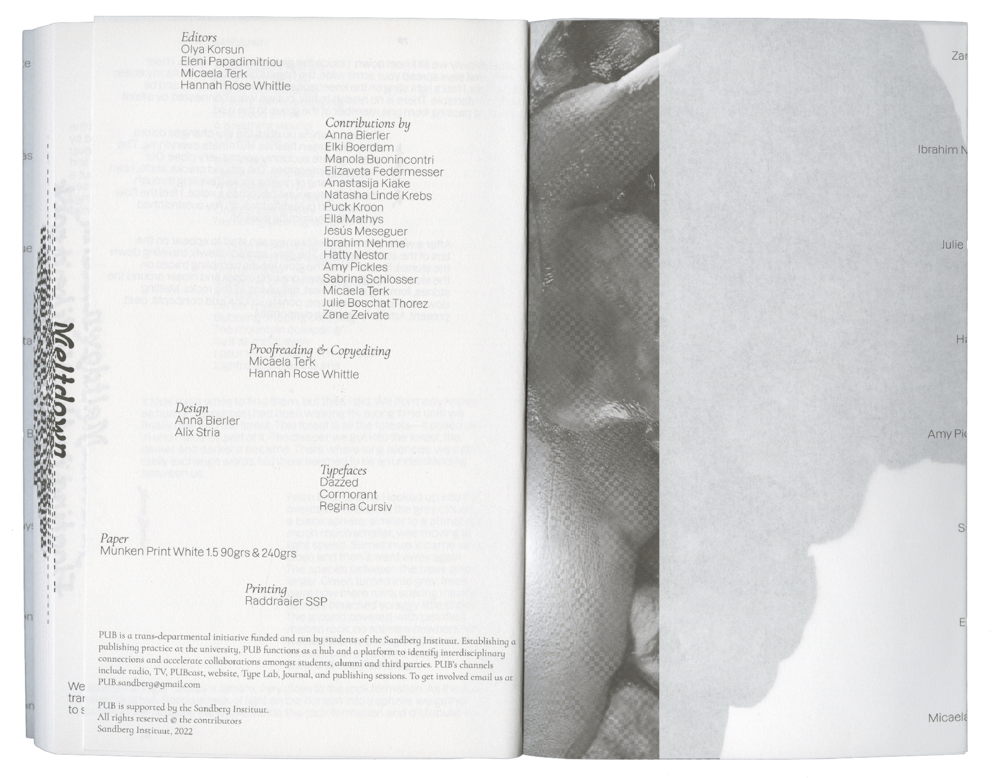contributors ~~~ Amy Pickles, Anastasija Kiake, Anna Bierler, Elizaveta Federmesser, Elki Boerdam, Ella Mathys, Hatty Nestor, Ibrahim Nehme, Jesús Meseguer, Julie Boschat Thorez, Micaela Terk, Mino Buonincontri, Natasha Linde Krebs, Puck Kroon, Sabrina Schlosser, Zane Zeivate