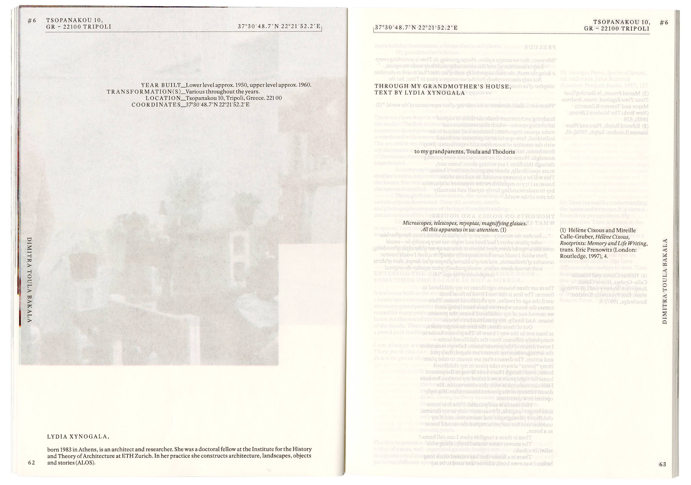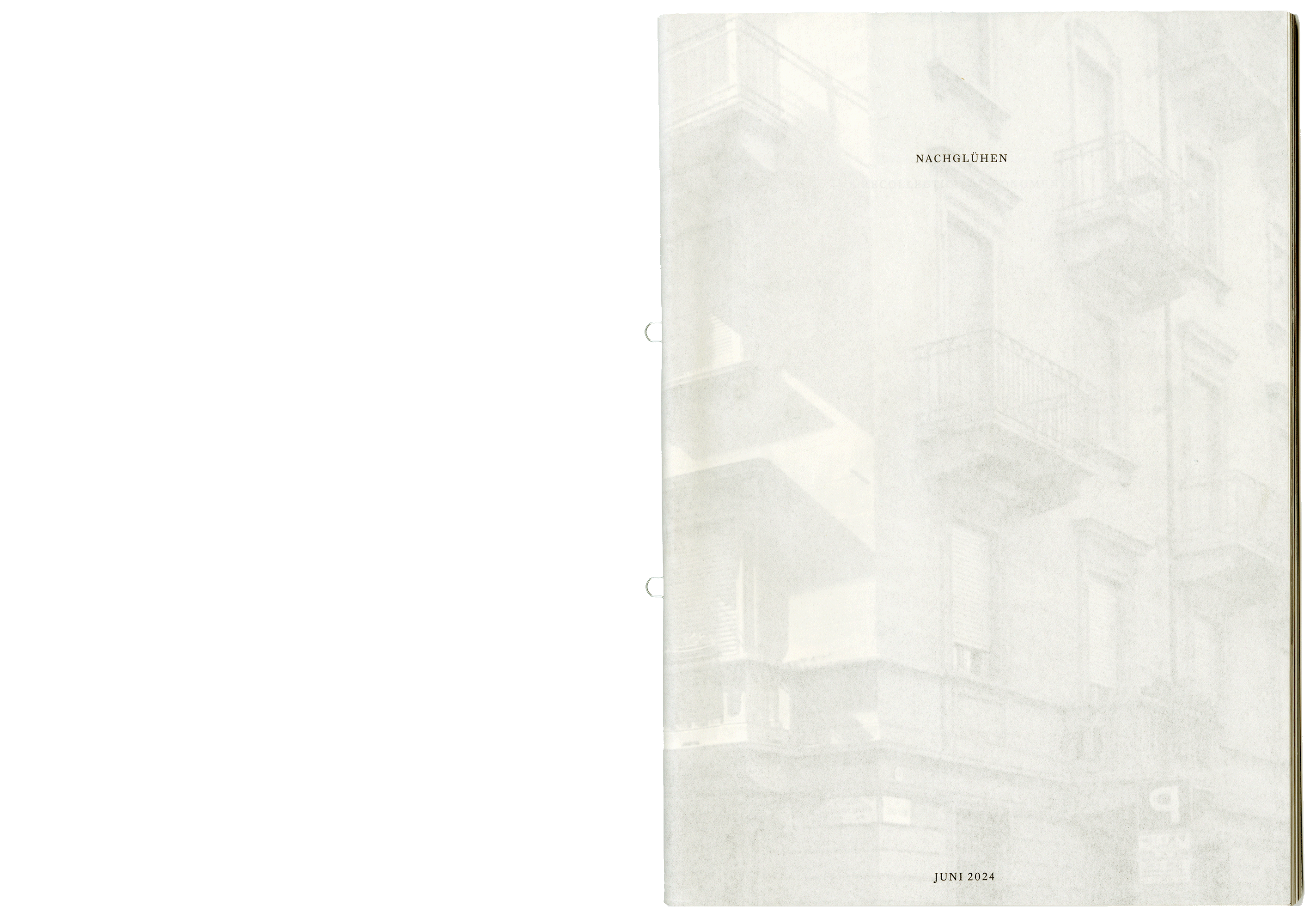 NACHGLÜHEN is a project about architectural memories. It collects stories, images and documents about grandmothers, omas, nonnas and their homes. The publication is riso-printed on semi-transparent paper, fragile in its handling, in order visualize the tactility of the content.